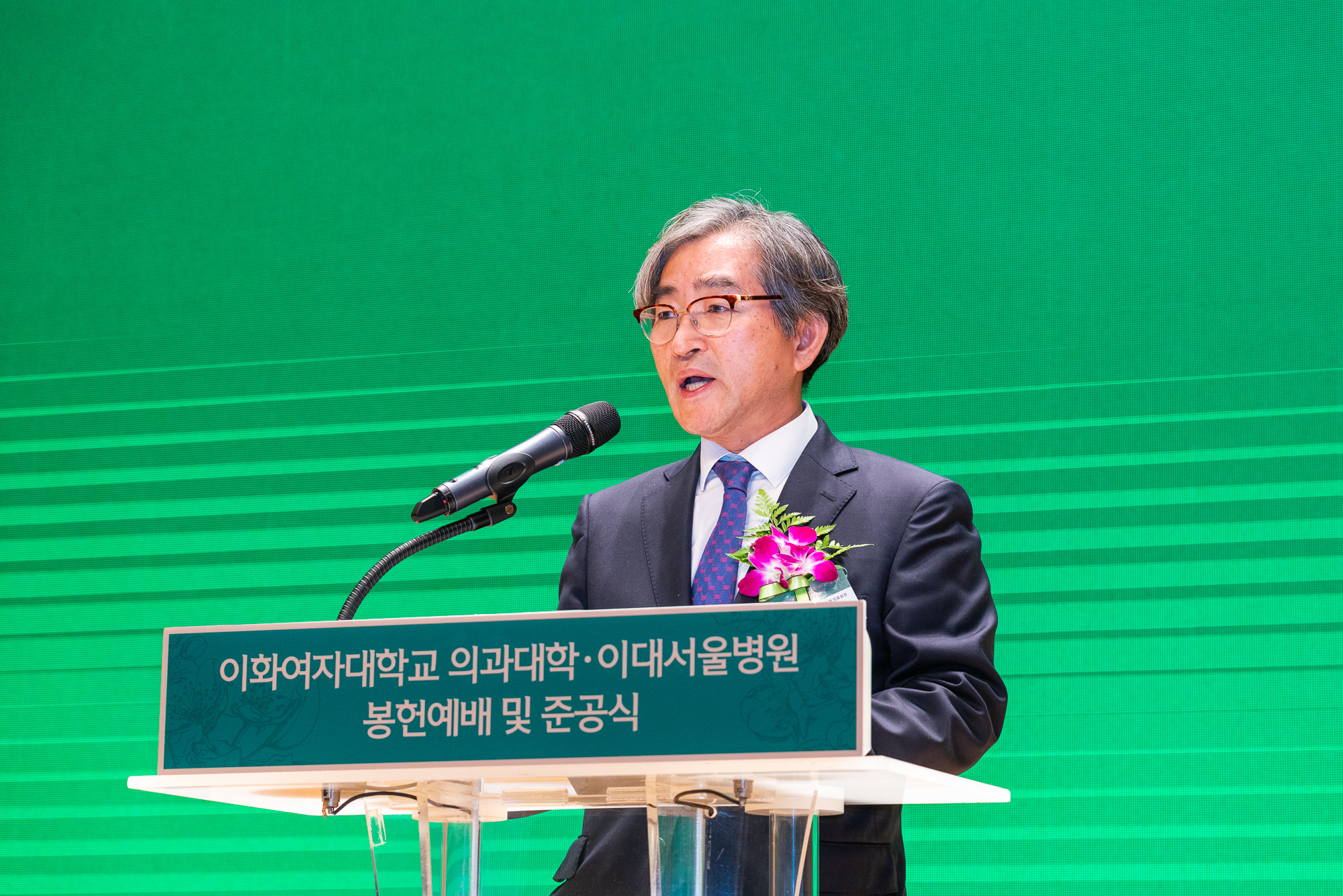 ▲ 김혜숙 이화여자대학교 총장이 이화여자대학교 의과대학 및 이대서울병원 준공 기념 행사에서