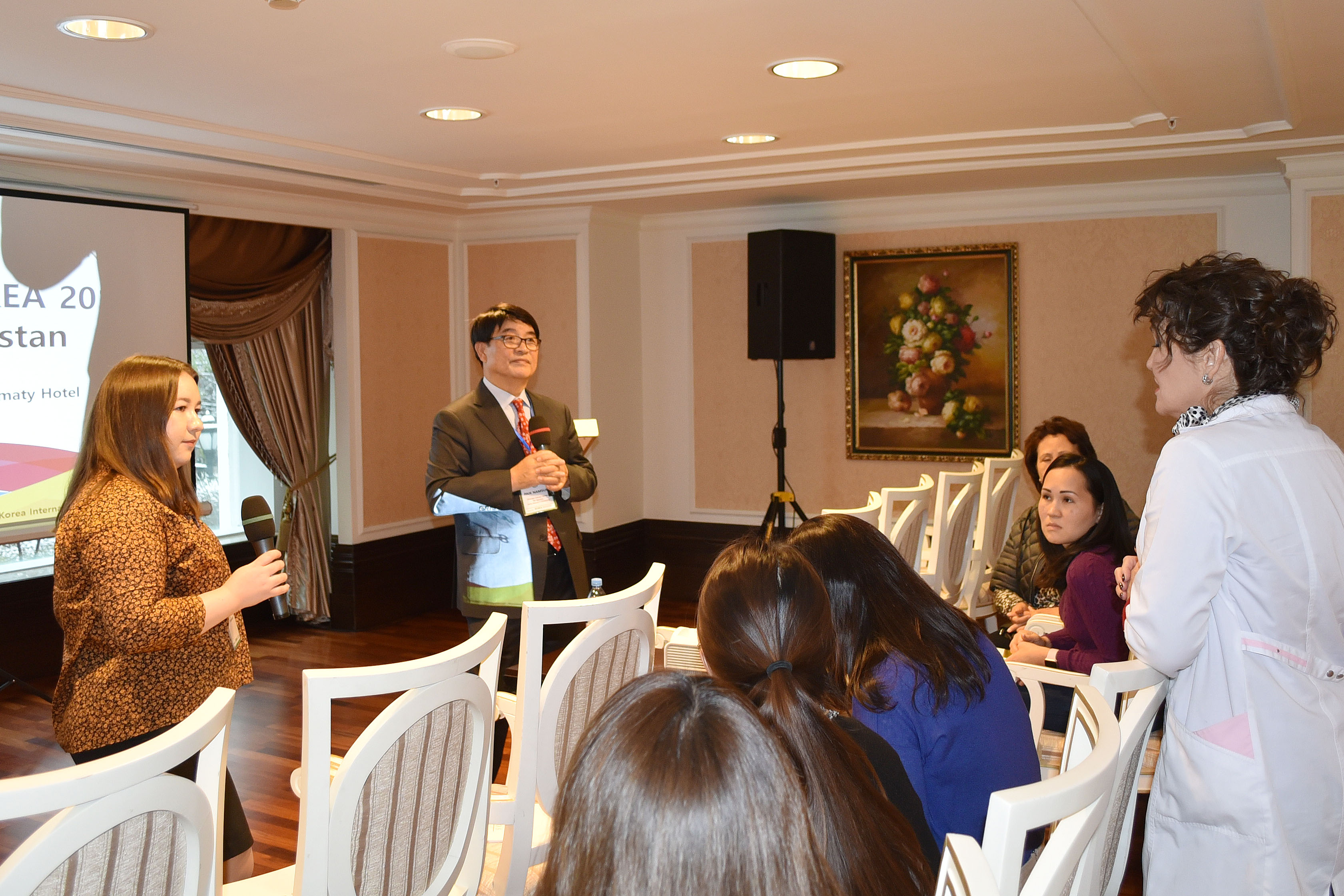 ▲ 백남선 이대여성암병원장이 카자스흐탄을 방문해 현지 주민과 외국인 환자 유치 업체 관계자와의 교류회에서 특강 후 질의응답 시간을 가지고 있다.