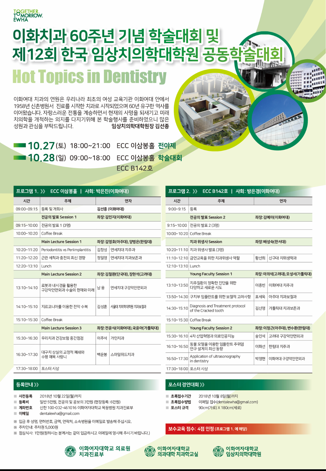 이대목동병원 치과진료부는 오는 10월 28일 오전 9시부터 오후 5시까지 '이화치과 60주년 기념 학술대회'를 개최한다.