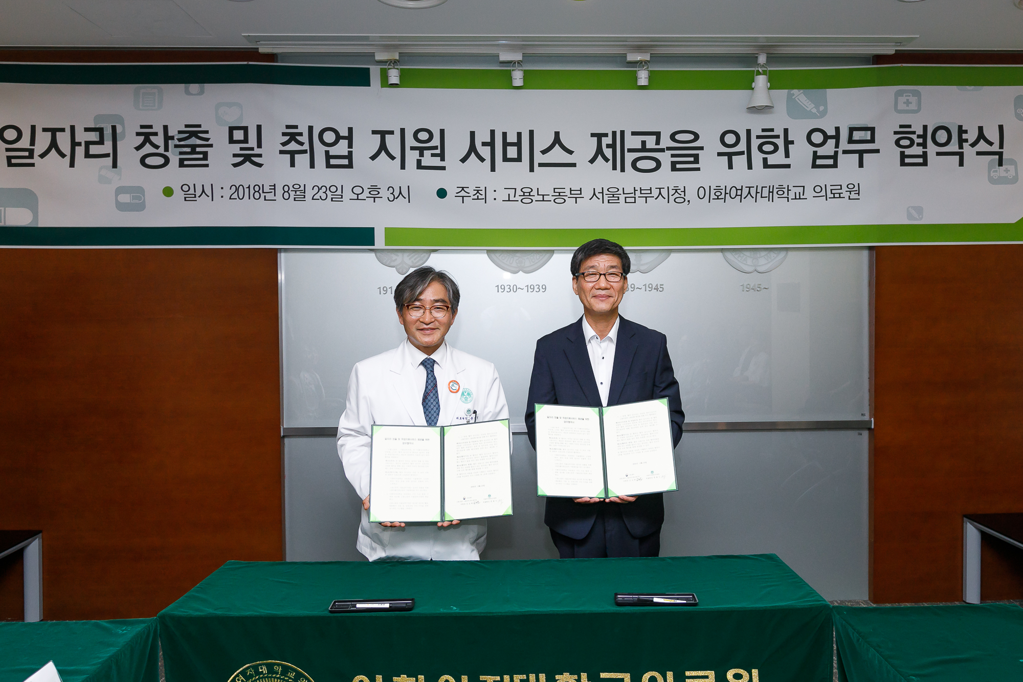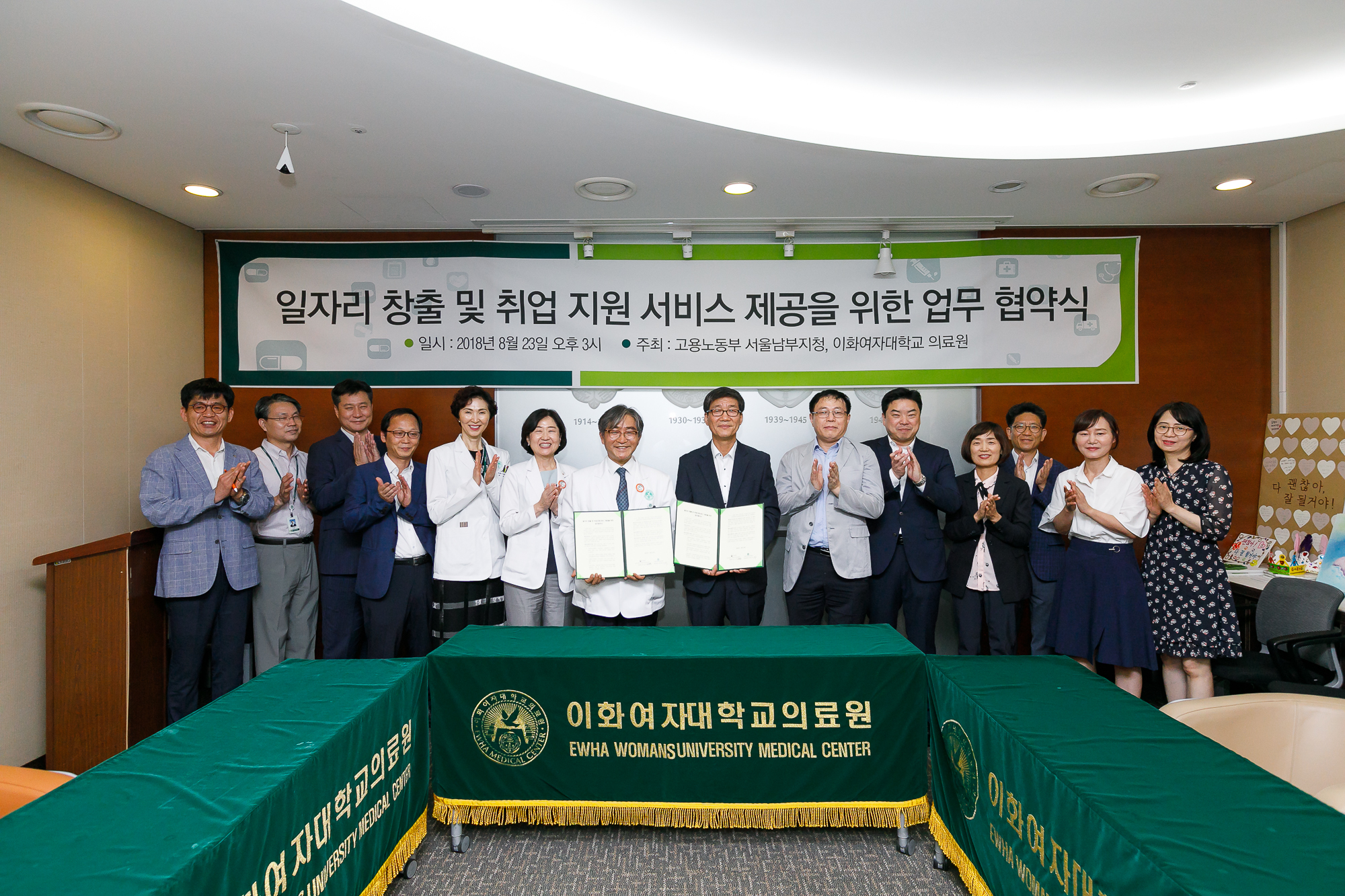 이화여자대학교 의료원(의료원장: 문병인)은 지난 8월 23일 고용노동부 서울남부지청(지청장: 강요원)과 일자리 창출 및 취업 지원 서비스 제공과 관련한 업무 협약을 맺었다.