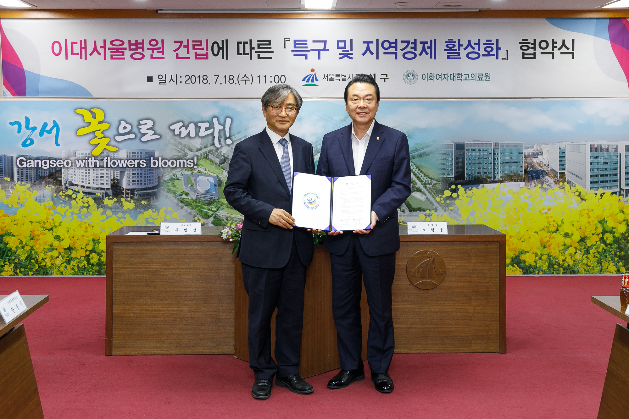 이화여자대학교 의료원(의료원장: 문병인)은 지난 7월 18일, 강서구청(구청장: 노현송)과 이대서울병원 건립에 따른 미라클 메디 특구 및 지역경제 활성화를 위한 협약을 체결했다.